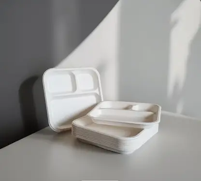 Disposable Bagasse with 3 Compartments 12 inch Dinner Plate (Pack of 10)